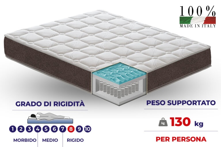 100% MADE IN ITALY,tai reiškia kad visos medžiagos naudojamos čiužinių gamyboje yra aukščiausios kokybės(CE ir CertiPUR® sertifikatai) ir pagamintos Italijoje.